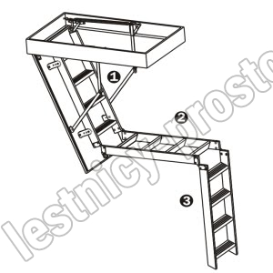 Складная 3-х секционная (до 2800 мм) или 4-х секционная (до 3500 мм) чердачная лестница. Рабочая поверхность полностью выполнена из алюминия. Термоизоляционная крышка типа "сэндвич" имеет усиленную теплозащиту, облицована с двух сторон ДВП белого цвета. По контуру короба имеется уплотнитель;