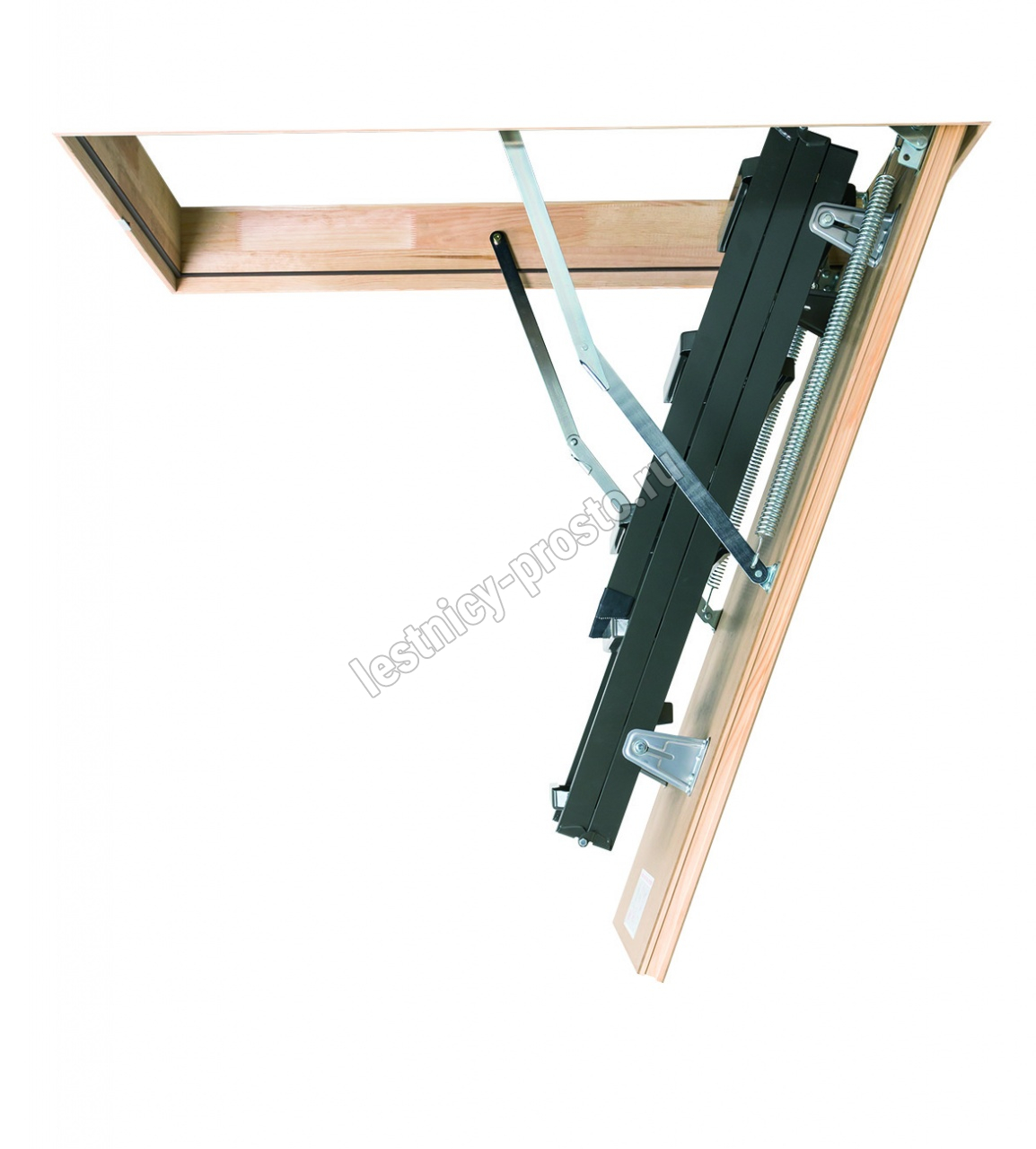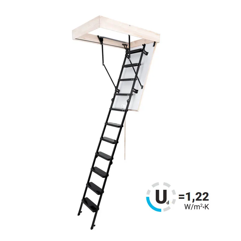 Чердачная металлическая лестница LMS – это надежная складная конструкция, состоящая из марша и термоизоляционной крышки, изготовленной из ДВП и окрашенной в бежевый цвет. Герметичность всей конструкции достигается благодаря утеплению крышки люка и контурному уплотнению по периметру, что предотвращает возможные теплопотери. Чердачную лестницу очень легко разложить и сложить благодаря наличию специального стержня с четырехугольной насадкой. Установленные в лестнице угловые петли-шарниры нового образца придают ей высокую прочность и надежность, а также предохраняют короб от возможной деформации. Основное преимущество чердачной складной металлической лестницы LMS сводится к ее небольшим габаритам при сохранении высокой функциональности, прочности, надежности и эстетичности конструкции. Монтировать лестницу очень просто, для этого не придется затрачивать много времени и сил. Применение лестничной конструкции этого типа позволяет существенно экономить пространство. Монтажный комплект LXK в комплекте не поставляется.