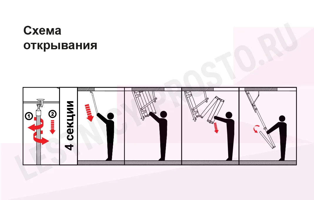 Максимально утеплённая чердачная лестница из массива сосны высокого качества. Складная, трёхсекционная (до 280 см) или четырехсекционная (до 335 см).