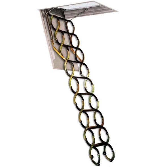 Металлическая чердачная лестница LST оснащена энергосберегающей термоизоляционной крышкой люка белого цвета. По периметру люка установлен контур уплотнения, обеспечивающий высокую степень герметичности. Благодаря «ножничной» системе складывания в сложенном виде лестница очень компактна и имеет небольшой размер крышки люка. S-образные боковые элементы лестницы выполняют роль поручней и придают лестнице современный вид.