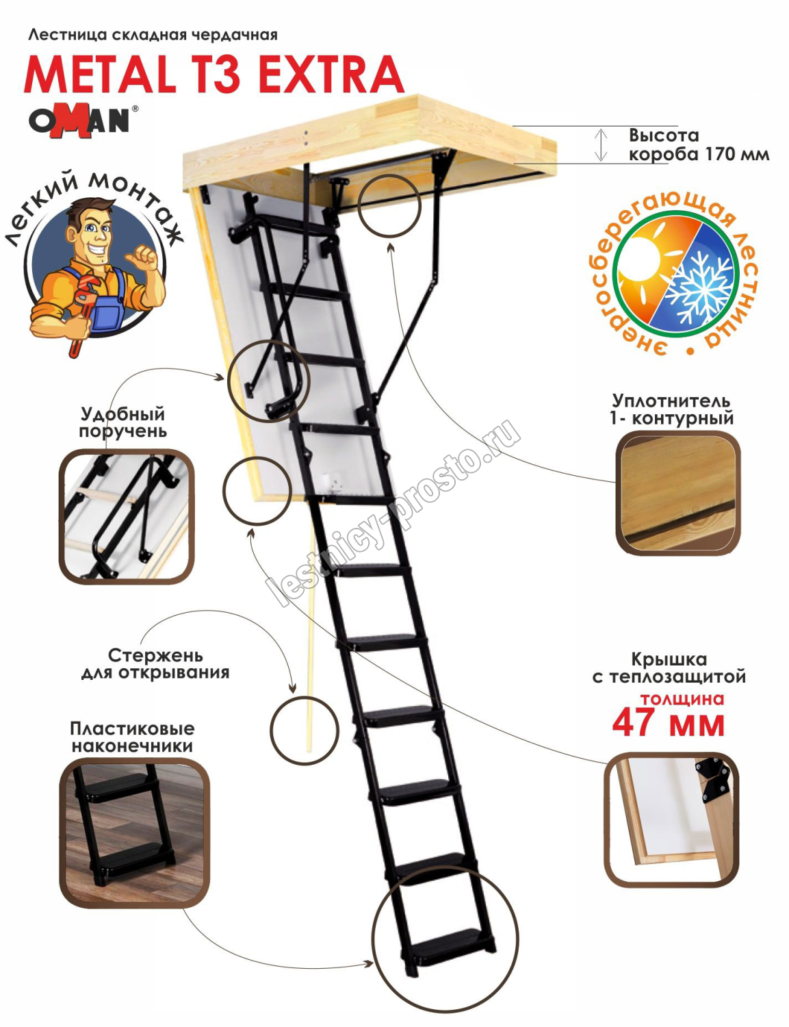 Лестница OMAN Metal T3 EXTRA 55×140 см, h-280 см