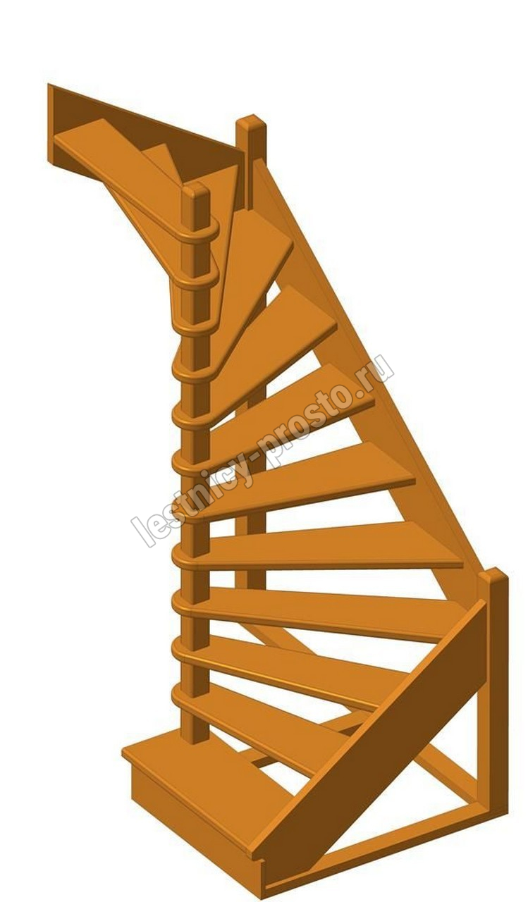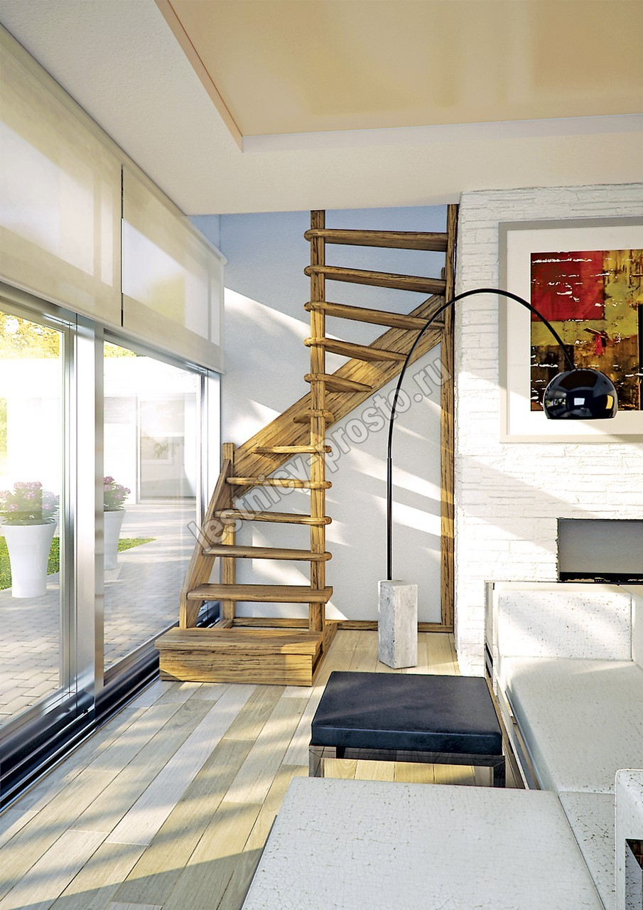 Деревянная межэтажная лестница ЛЕС-01 2340-2540 проем 1630-900, Сосна