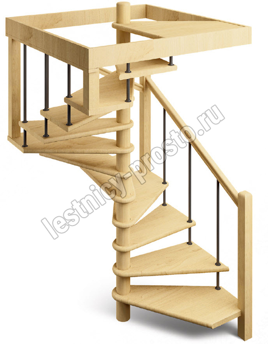 Компактная деревянная лестница с металлическими стойками перил. Легко собирается и занимает небольшое пространство на первом и втором этаже. Фиксированный квадратный короб на верхнем уровне обеспечивает дополнительную прочность конструкции. Монтаж осуществляется силами двух человек на объекте по указаниям, приведенным в паспорте на лестницу.