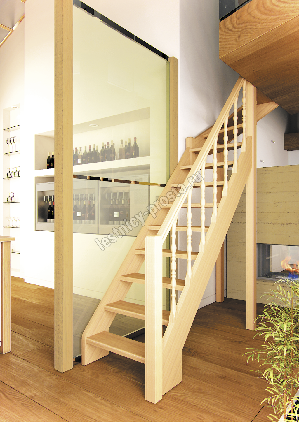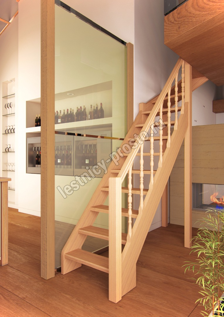 Деревянная межэтажная лестница Лес-715, Бук