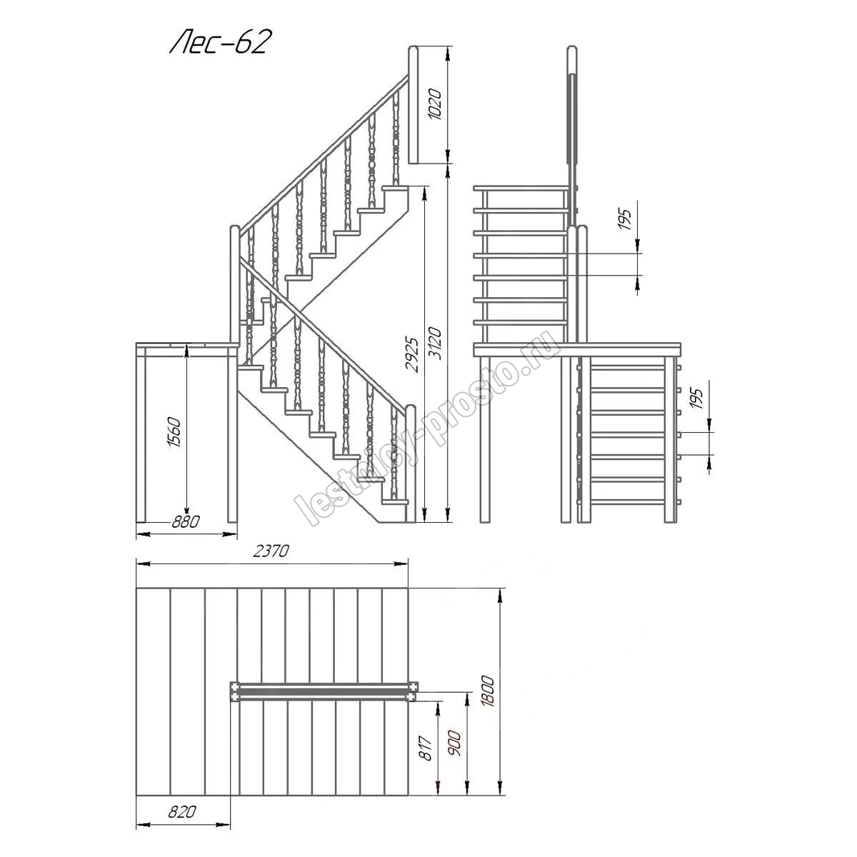 Лестница деревянная из сосны ЛЕС-62