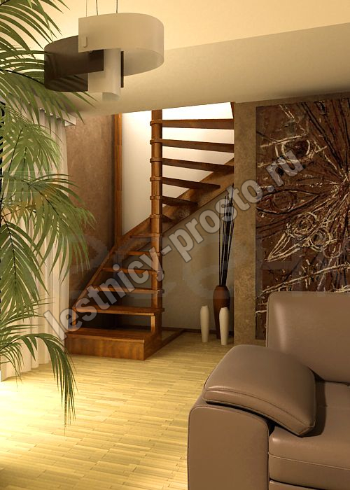 Деревянная межэтажная лестница ЛЕС-01 2525-2720 проем 1640-900, Лиственница