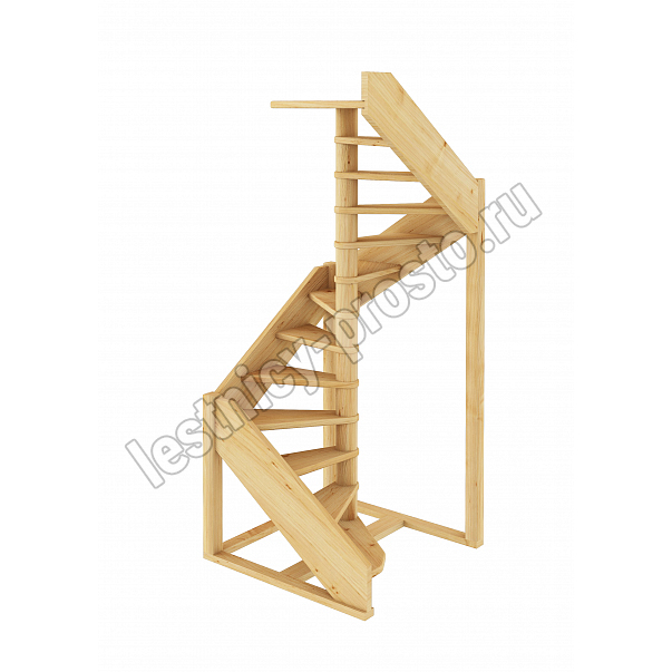 Небольшая аккуратная лестница, хорошо подойдет для помещения с небольшим проемом, поможет сэкономить пространство и организовать комфортный подъем на  уровень выше. Возможны варианты лестницы из сосны под покраску, сосны, дуба, бука или ясеня. Для увеличения срока эксплуатации мы рекомендуем покрыть элементы лестницы защитным средством. Вы можете сделать это самостоятельно или заказать предварительное покрытие необходимым средством (или тонирование) в нашем цеху.