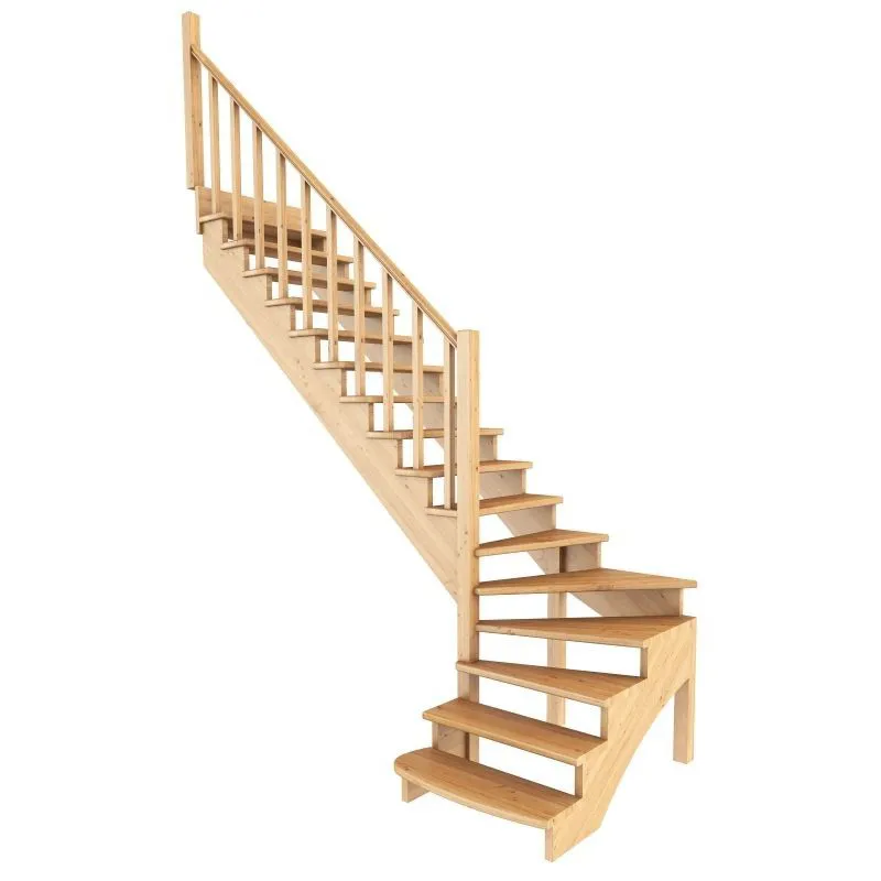 Базовый комплект включает в себя деревянные элементы лестницы без какого-либо покрытия. Лестница поставляется в разобранном виде.