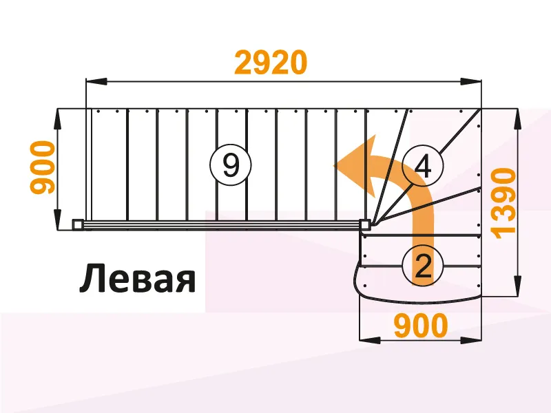 Лестница К-001М/3 с поворотом налево