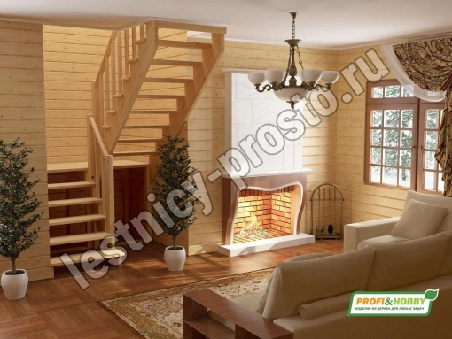 Материал: бук (ступени и поручень), сосна (косоуры, столбы, балясины)