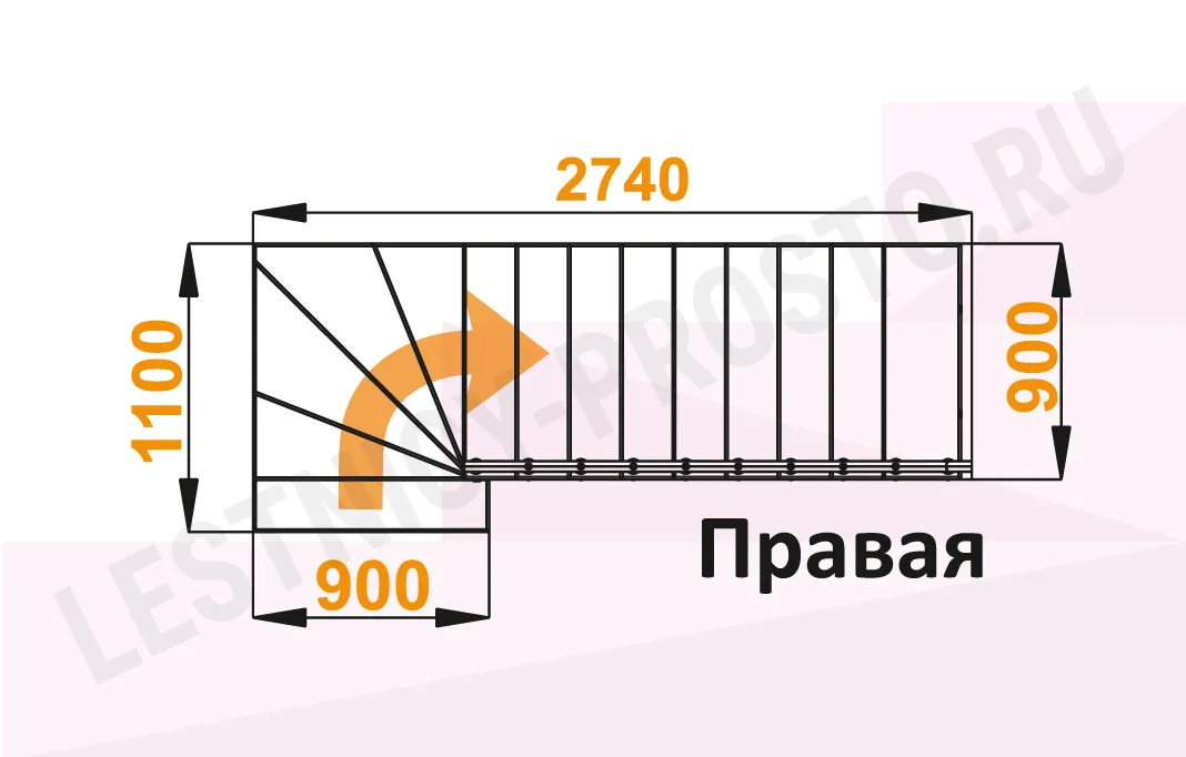Схема лестницы К-008М с поворотом направо