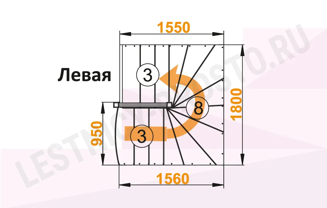 Лестница К-003М/2 с поворотом налево