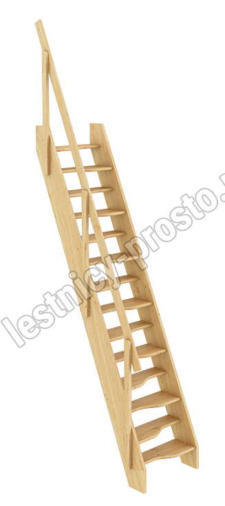 Ступени и поручень лестницы изготовлены из дуба, остальные элементы из сосны.