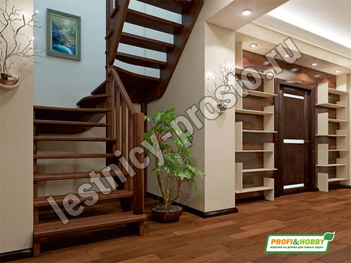 Ступени и поручень лестницы изготовлены из дуба, остальные элементы из сосны.