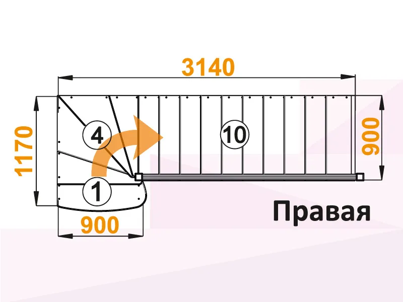 Лестница К-001М/8 с поворотом налево