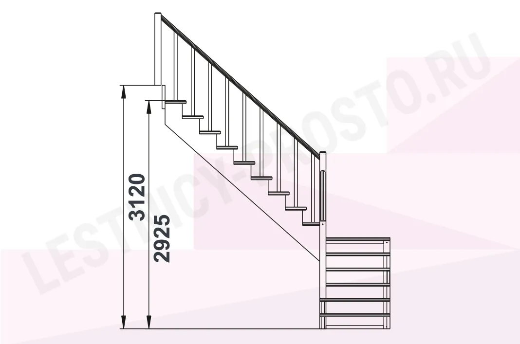 Базовый комплект включает в себя деревянные элементы лестницы и ограждения без какого-либо покрытия.