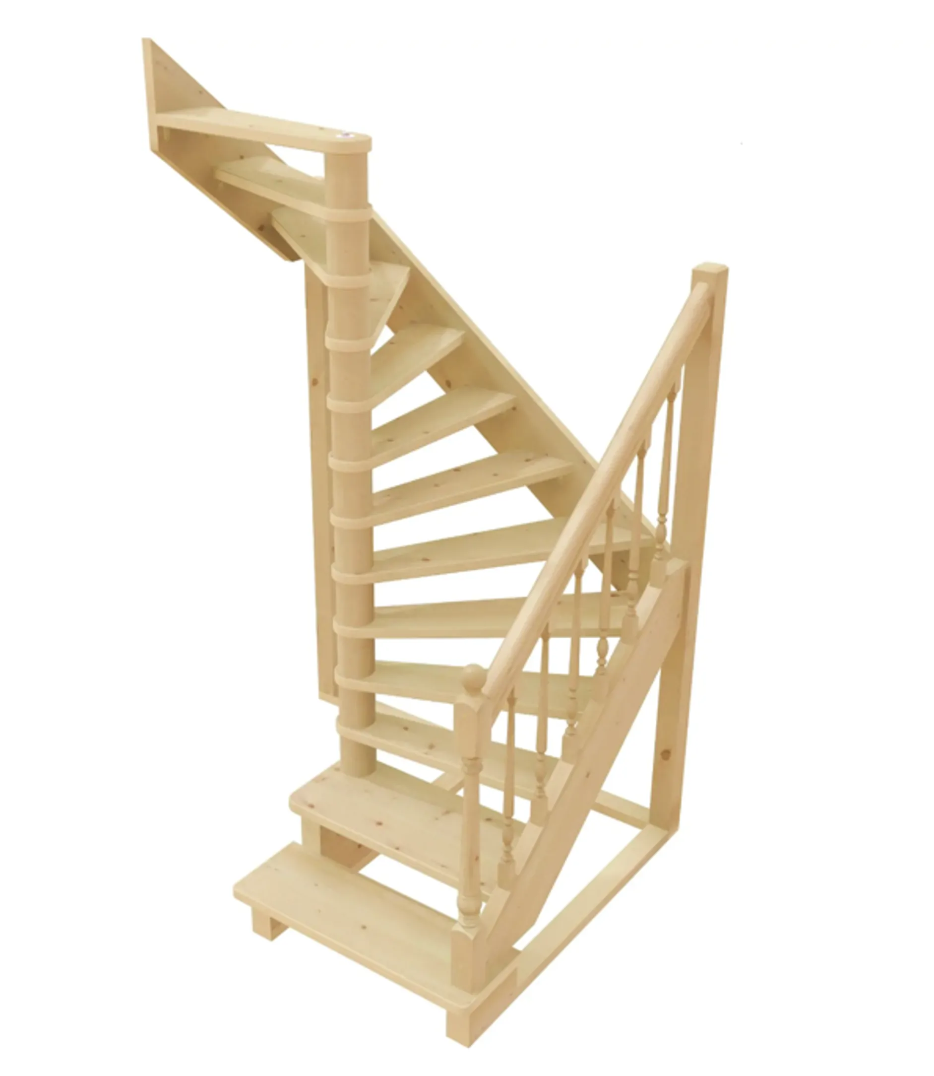 Базовый комплект включает в себя деревянные элементы лестницы и ограждения без какого-либо покрытия.