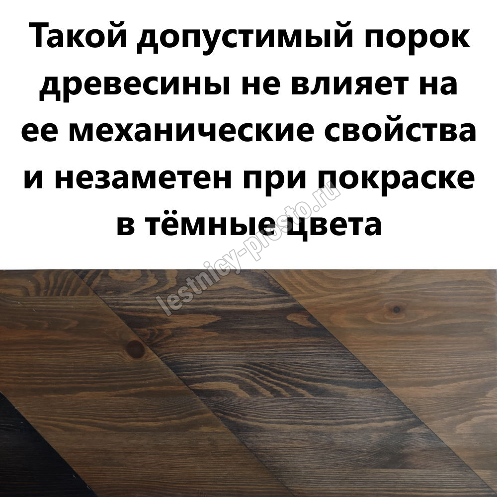 Обратите внимание! Данный вариант лестницы изготовлен из сосны эконом-класса, которая имеет заметные вкрапления серого/синего цвета, что не влияет на прочность лестницы, но может быть заметно при покраске в светлые цвета.