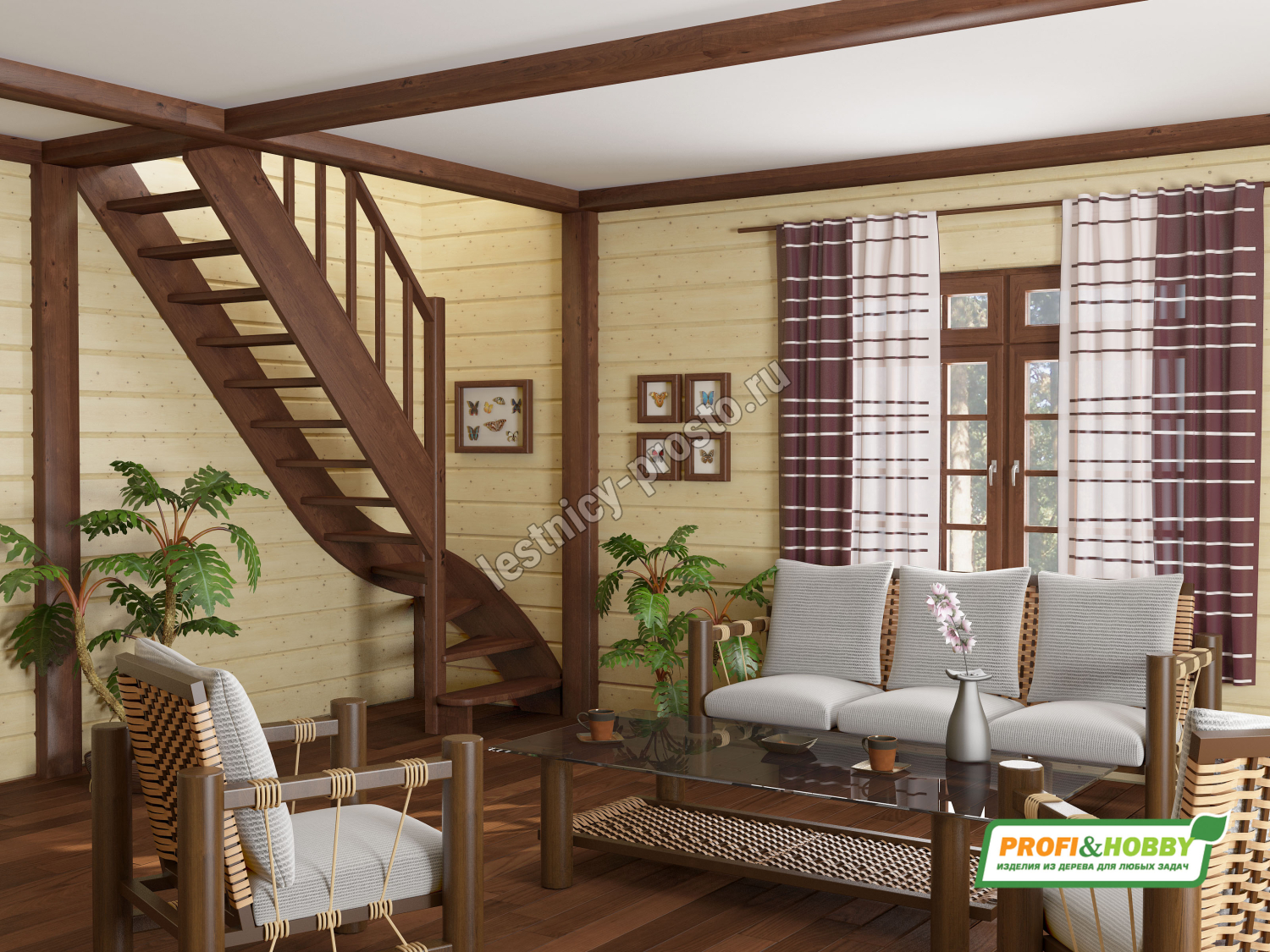 Лестница из сосны ЛС-07М/2 с подступёнками