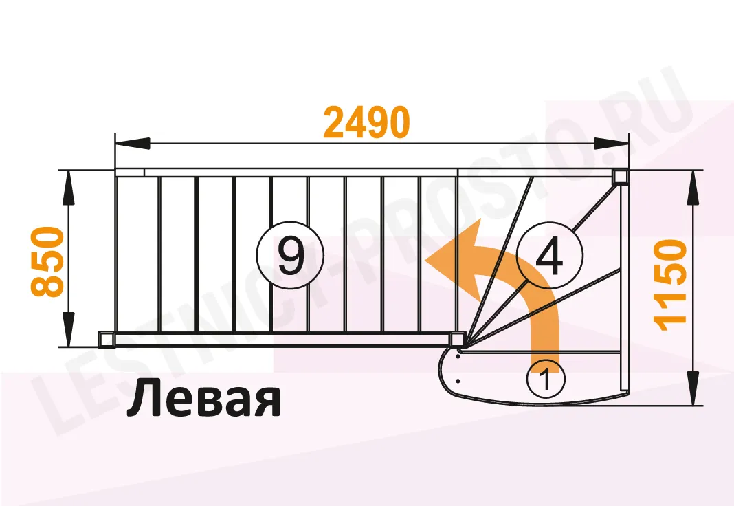 Схема лестницы ЛС-07М/2 с поворотом налево