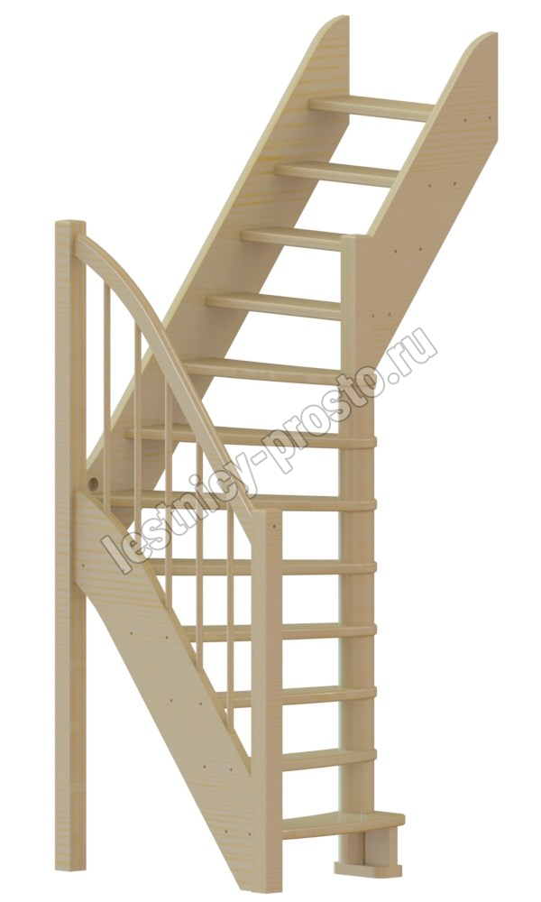 Базовый комплект включает в себя деревянные элементы лестницы и ограждения без какого-либо покрытия.