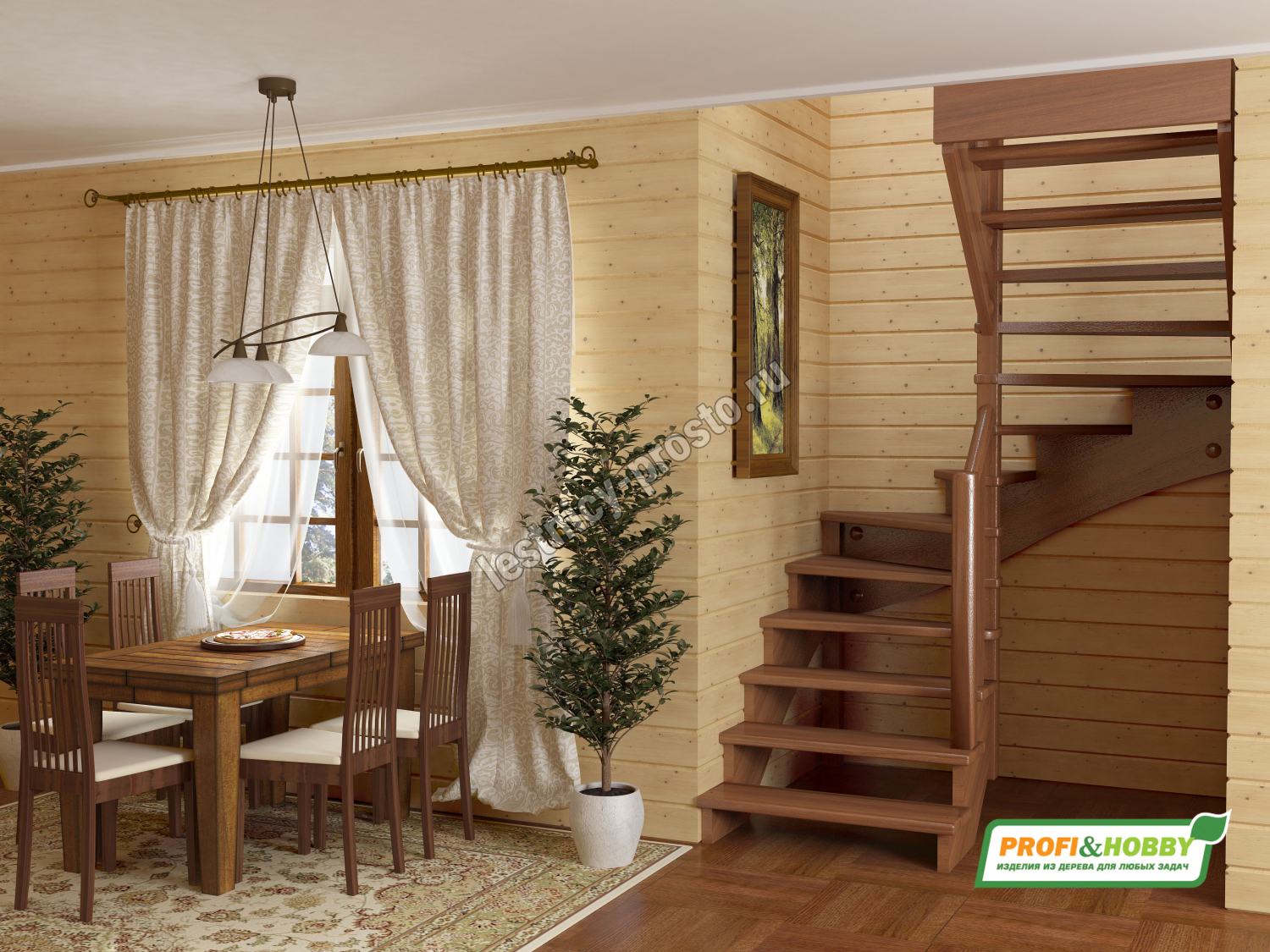 Ступени и поручень лестницы изготовлены из ясеня, остальные элементы из сосны.