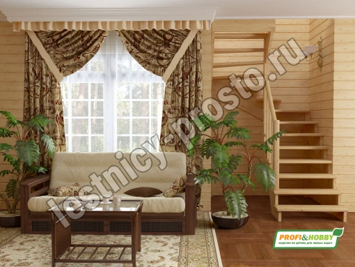 Базовый комплект включает в себя деревянные элементы лестницы и ограждения ;без какого-либо покрытия.