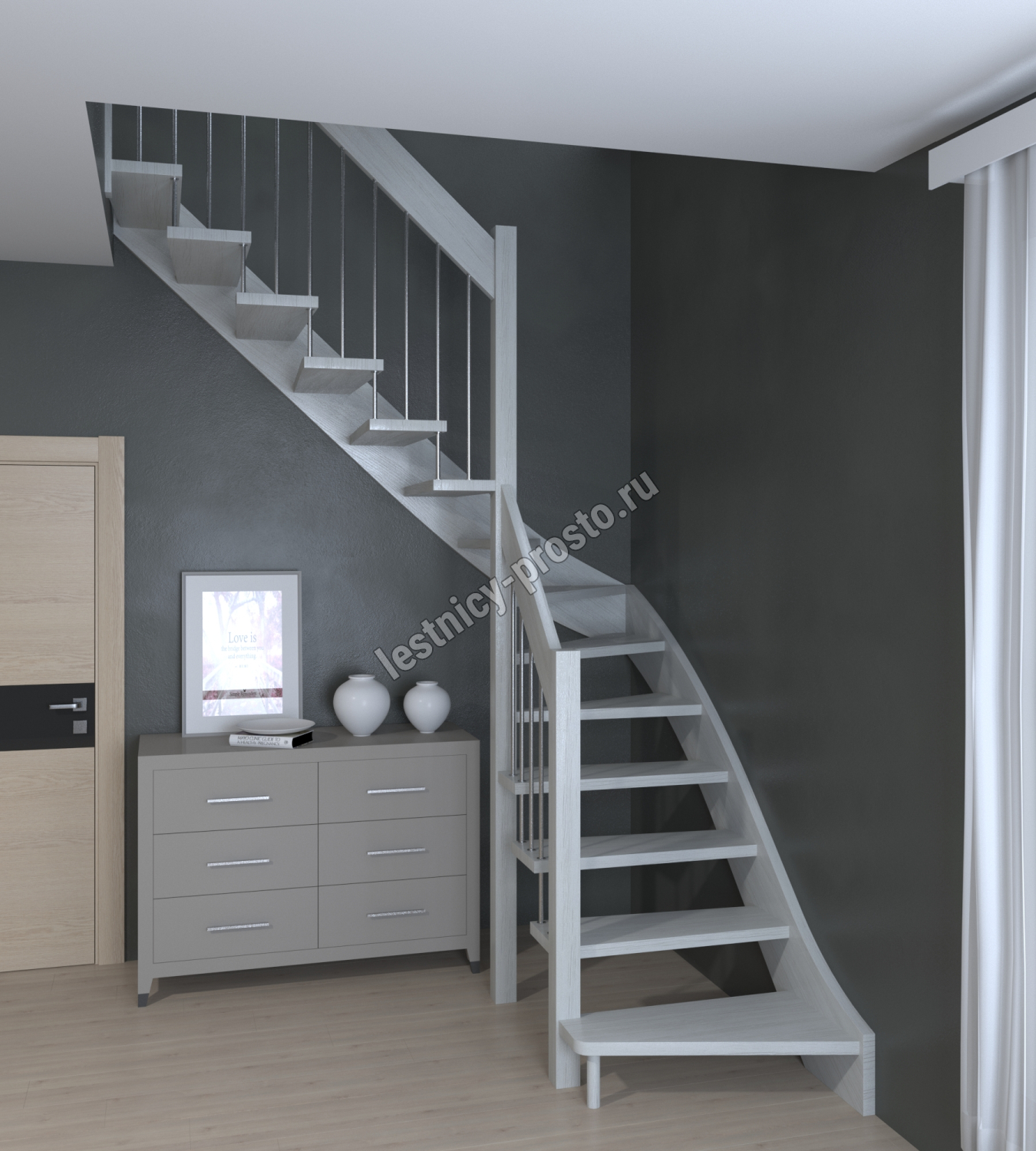 Лестница Prosto Console г-образная забежная ясень, h225 см (9 ступеней)