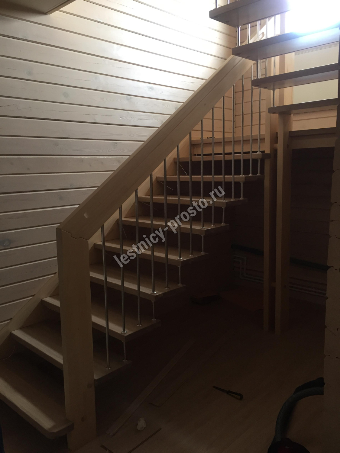 Надёжная современная лестница выполнена по немецкой технологии. Стоимость указана для лестницы с ограждением (с одной стороны); Поставляется в разобранном виде, в комплекте необходимый крепёж; Лестницу можно собрать самостоятельно; Так же, вы можете заказать услугу монтажа нашими специалистами; 4 вида породы дерева для изготовления лестницы: сосна, бук, ясень, дуб; возможна комбинированная лестница: из сосны (ступени бук, ясень, дуб); Деревянные элементы без какого-либо покрытия, отшлифованы, готовы к покраске. За дополнительную плату, вы можете изменить любые параметры, а именно: увеличить глубину ступени; увеличить ширину марша до 900 мм. и выше; заказать подступенки к лестнице; заказать отделку перекрытия (между 1-м и 2-м этажами); изготовить дополнительный промежуточный марш; заказать ограждение 2-го этажа; покраска в любой цвет или несколько цветов или покрытие защитными средствами; дополнение балясины из нержавеющей стали деревянными элементами; покраска балясин из нержавеющей стали порошковой краской в цвет RAL.