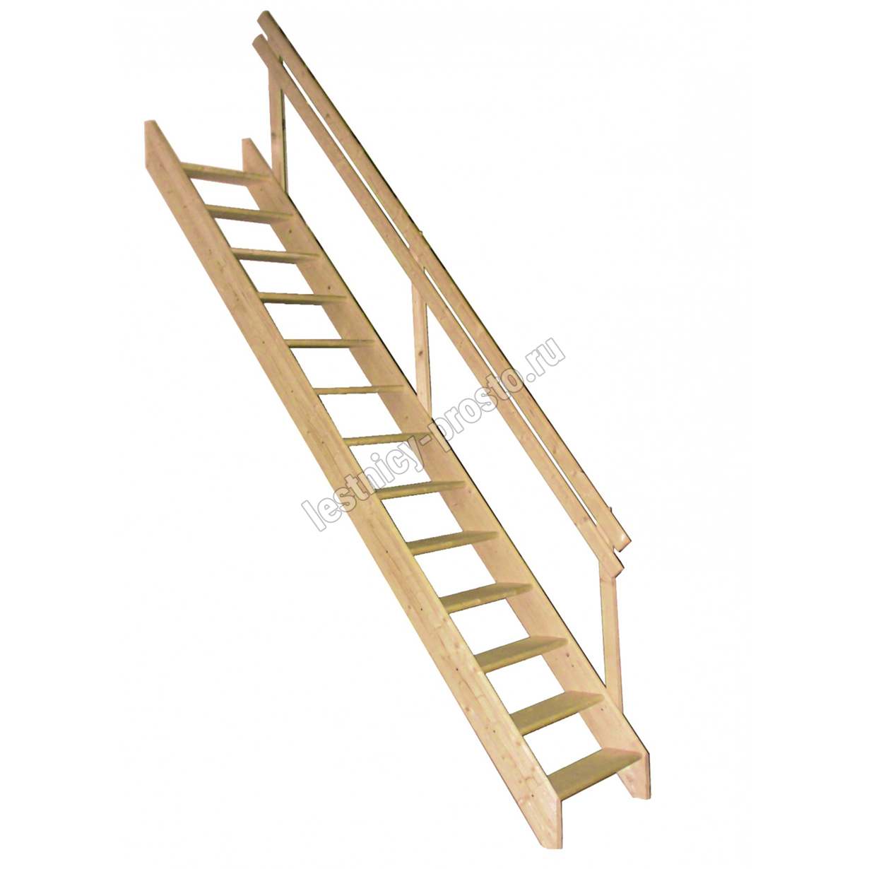 Базовая комплектация включает в себя деревянные элементы лестницы и поручень без какого-либо покрытия.