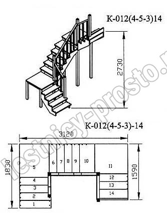 Высота лестницы 2730 мм