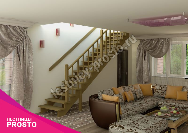 Данная лестница изготавливается под заказ в течении 4-5 недель. Возможно изготовление этой модели с другими размерами, подходящими под параметры вашего помещения. Базовое ограждение можно заменить на кованое или точеное. Ступени можно дополнить подступенями, бортиками, миниподступенями. Возможна установка лекальной (пригласительной) ступени. У лестницы комфортная высота шага, удобный широкий марш и угол подъема.