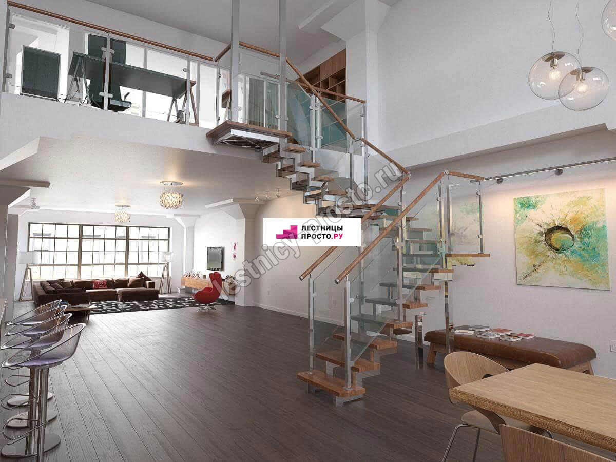 Лестница Prosto Double 50×100 п-образная, ступени лиственница