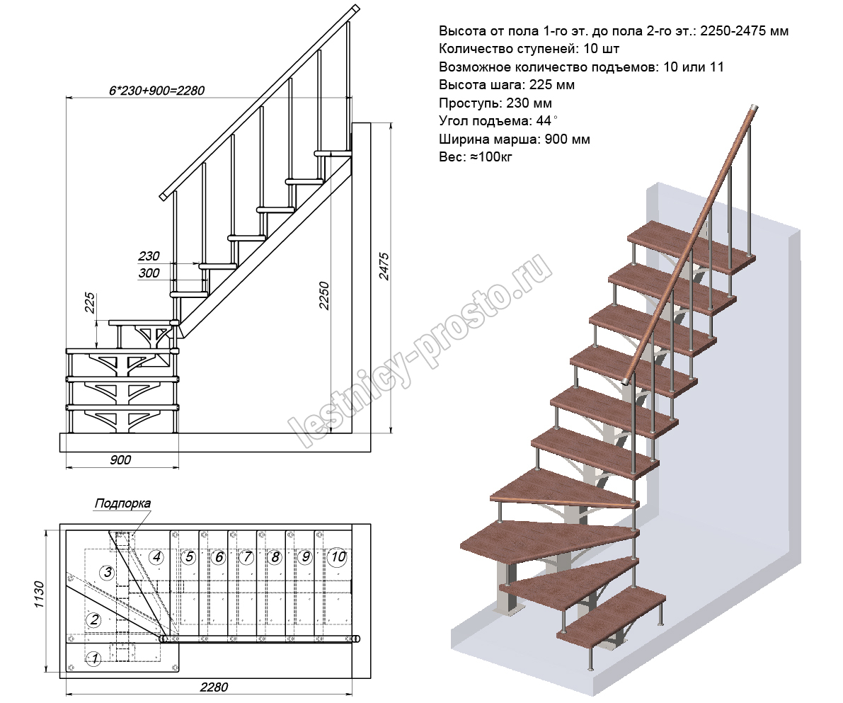 Высота лестницы 2250 - 2475 мм