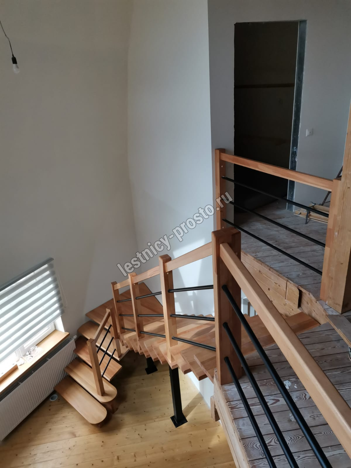 Поворот на 90° реализован посредством площадки, высота поворота определяется параметрами вашего помещения и размерами проёма.