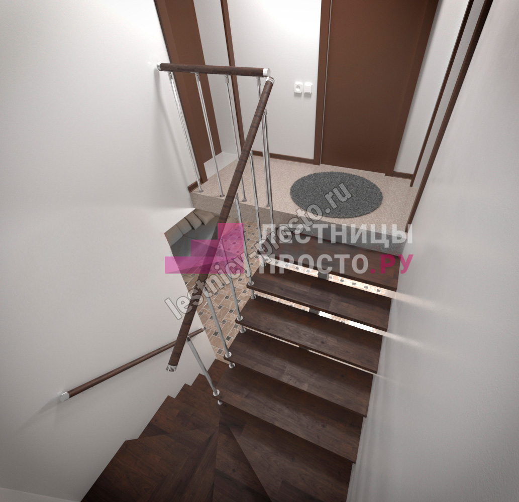 Конструкция представляет собой стальной монокосоур, на который крепятся ступени из выбранной породы дерева.