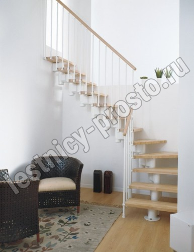 Красивая комфортная лестница с уникальной модульной конструкцией, которая позволяет собрать большое число модификаций, подходящих под ваш проём и другие условия помещения. Возможные варианты сборки лестницы смотрите в блоке "чертежи и схемы". При монтаже модульной лестницы KOMPACT, вы можете варьировать высоту шага и проступь, получив точную необходимую высоту и габариты. Ступени выполнены из массива бука и покрыты качественным износостойким лаком. Базовая комплектация позволяет получить лестницу под высоты этажа в диапазоне 2250 - 3030 мм, кроме того, установив дополнительный комплект увеличения высоты, можно поднять высоту лестницы до 3730 мм. Каркас и стойки ограждения выполнены из пластифицированного металла.