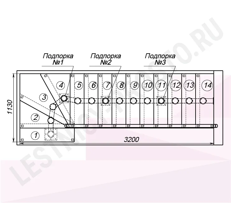 Высота лестницы 3150 - 3375 (14 ступеней) мм