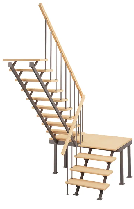 Каркас лестницы представляет собой набор модулей, которые комплектуются уже готовыми к монтажу.