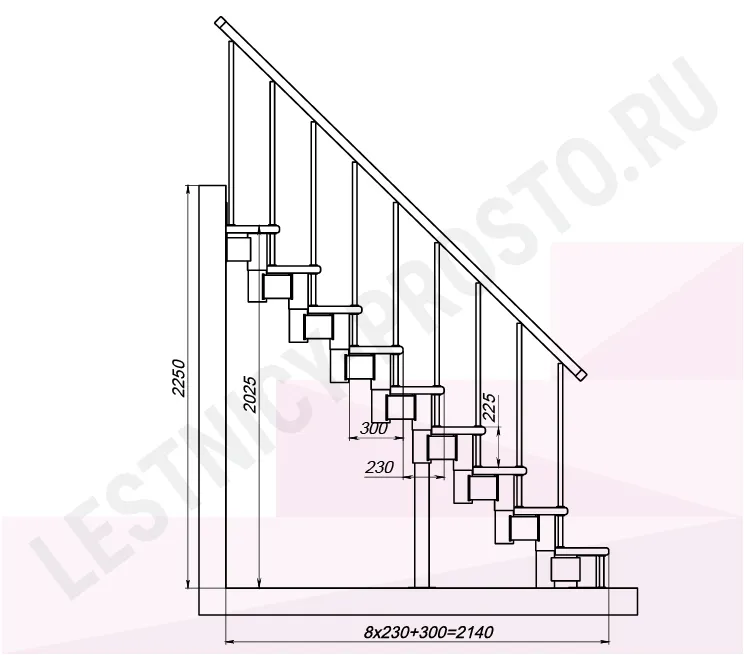 Высота лестницы 2025 - 2250 (9 ступеней) мм