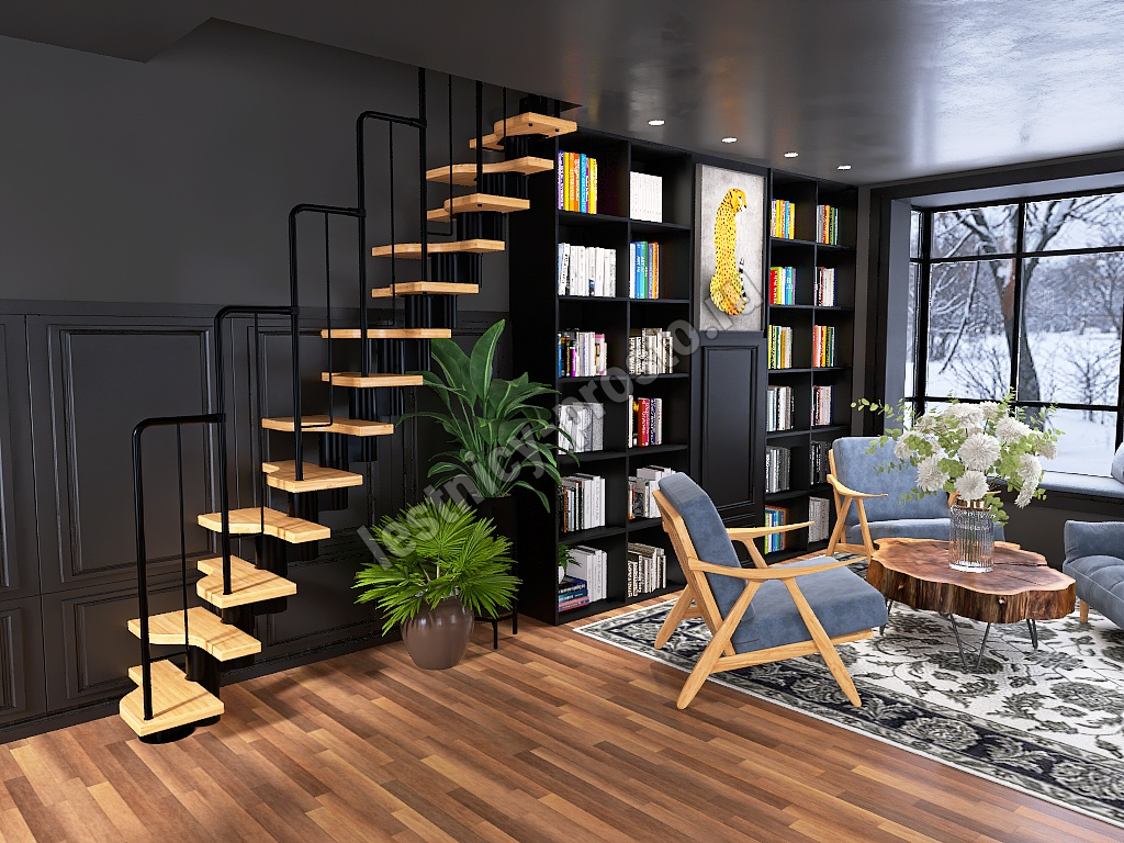 Лестница Prosto Urban Black гусиный шаг 700 мм, h234-336 см (13 ступеней), ясень