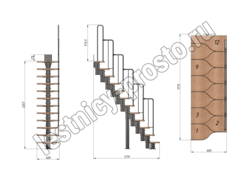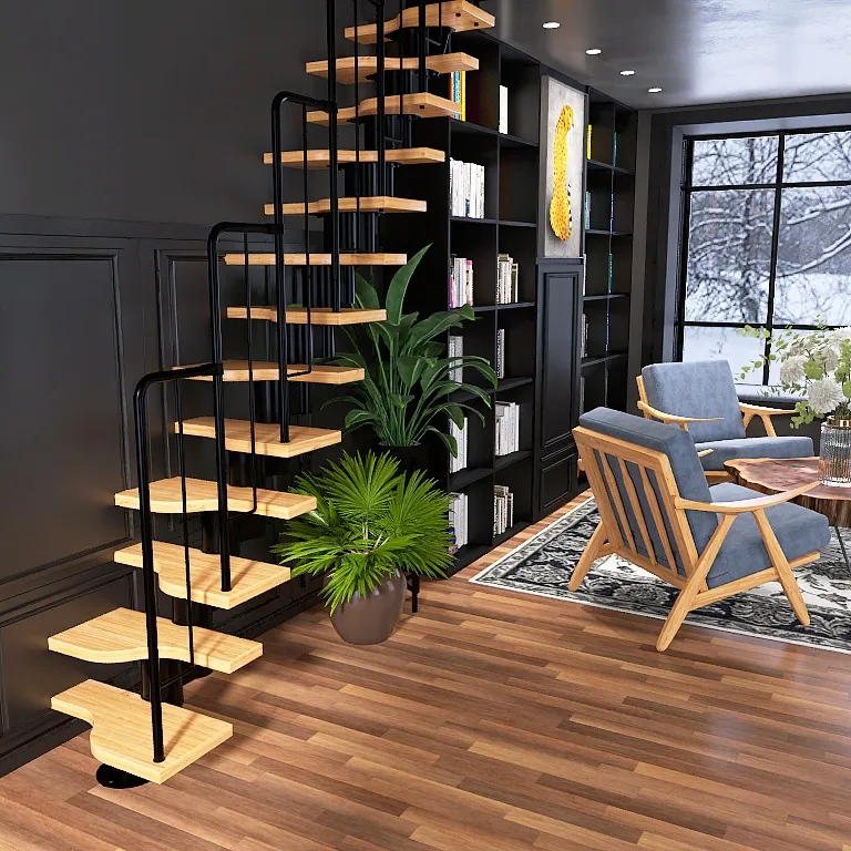 Лестница Prosto Urban Black гусиный шаг 600 мм/ Ступени из берёзы мультиплекс