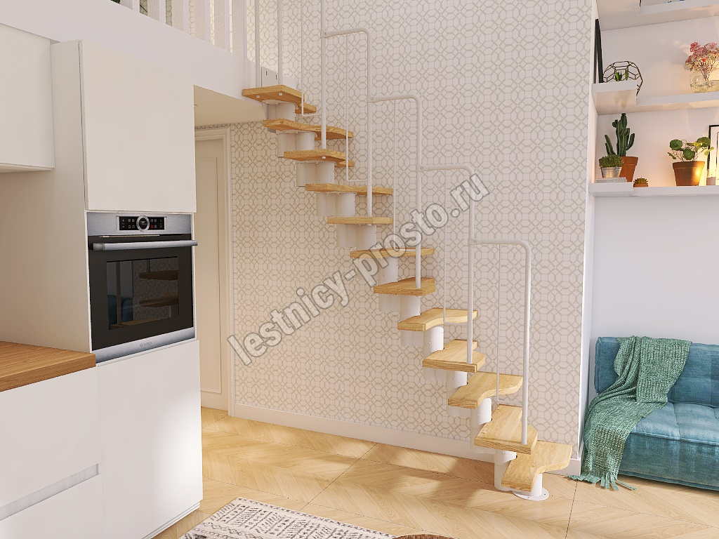Лестница Prosto Urban White гусиный шаг 600 мм, h180-264 см (10 ступеней), ясень