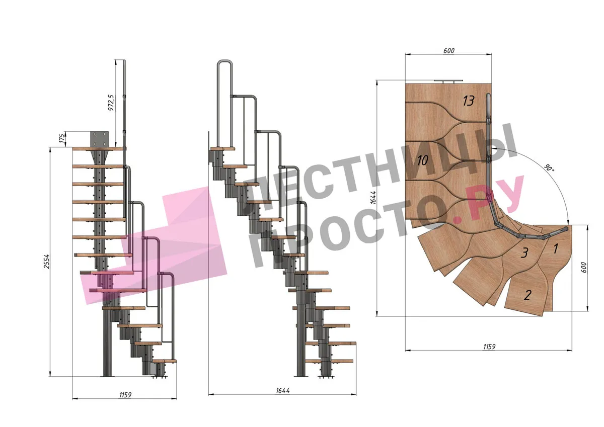 У лестницы  16 вариантов размера