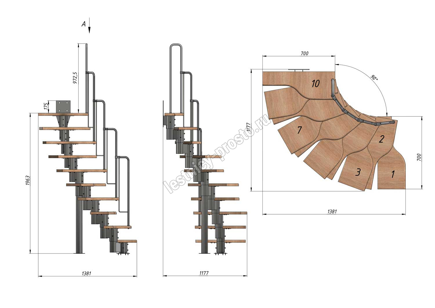 Лестница Prosto Urban White гусиный шаг 700 мм, h180-264 см (10 ступеней), ясень