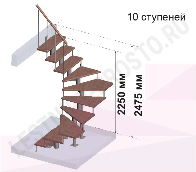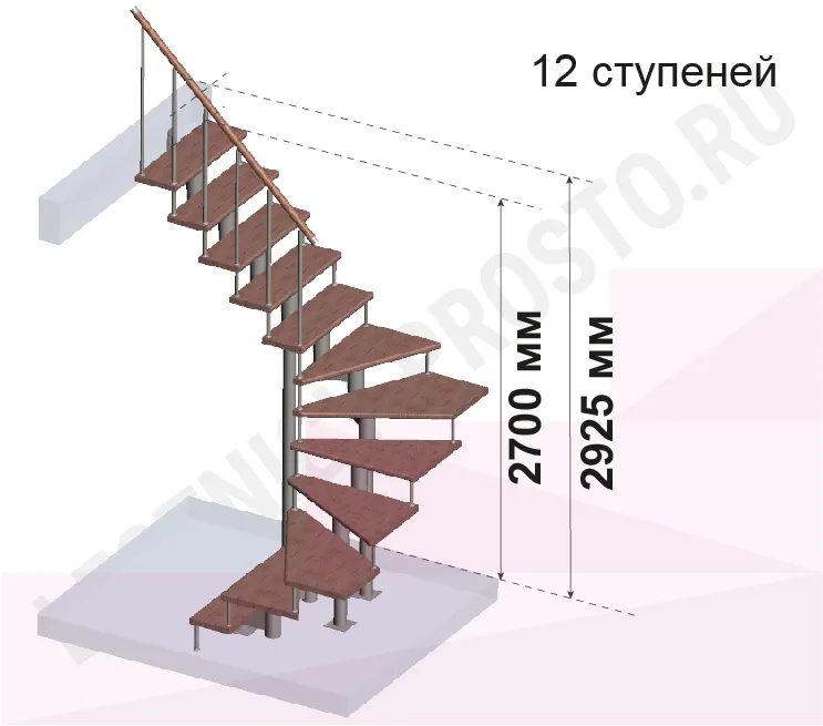 Модульная лестница PROSTO MODULE П-образная/ h270 см