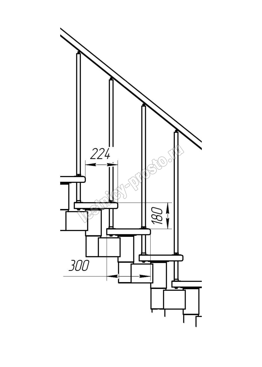 Модульная лестница Фаворит 180 2520-2660, Черный, Сосна, Нержавеющая сталь