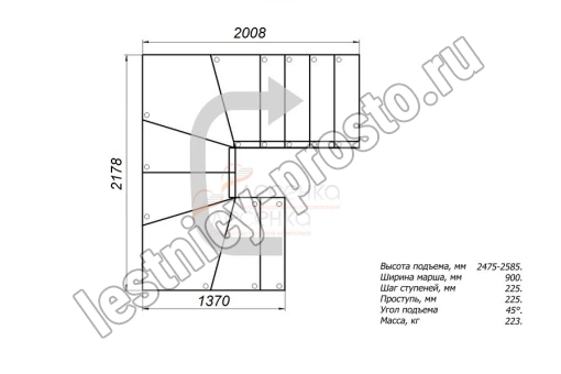 Высота лестницы 2475 - 2585 мм