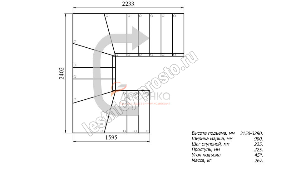Модульная лестница Спринт 225 3150-3290, Черный, Лиственница, Крашеная
