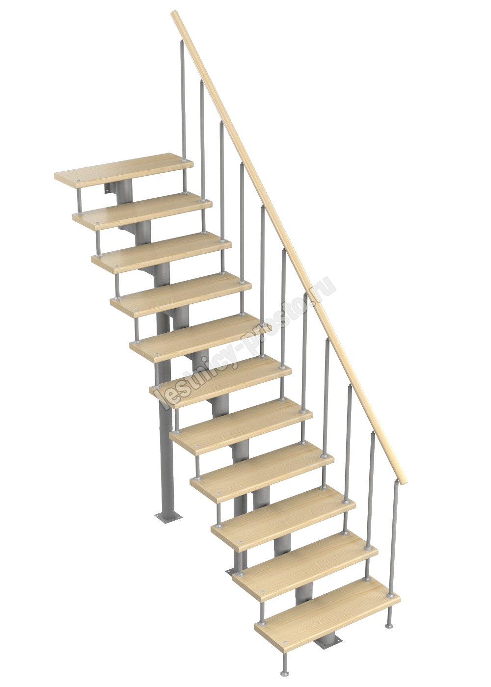 Модульная лестница Стандарт 2475-2585, Серый, Сосна, Крашеная, Без Ступений